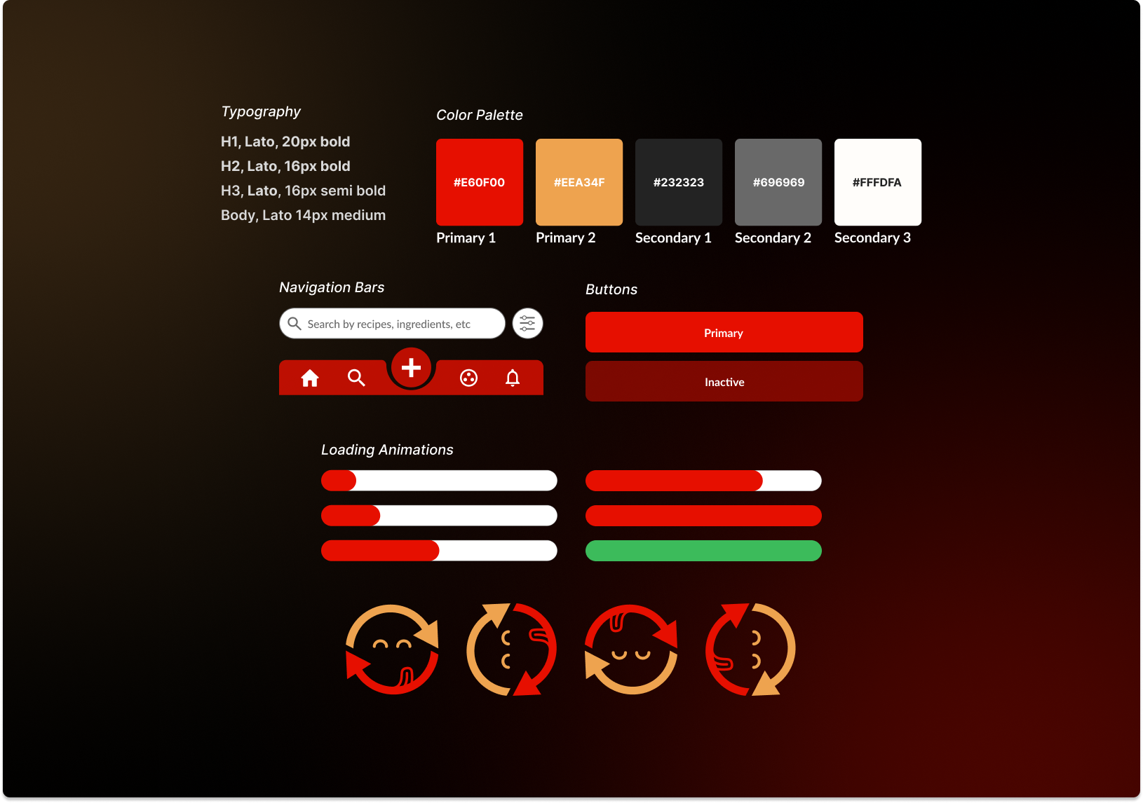 Typography plays a key role in maintaining clarity. Lato was chosen for its friendly tone and strong readability across headers, navigation, and dense recipe content. Clear hierarchy and consistent sizing allow users to scan ingredients, macros, and instructions effortlessly.