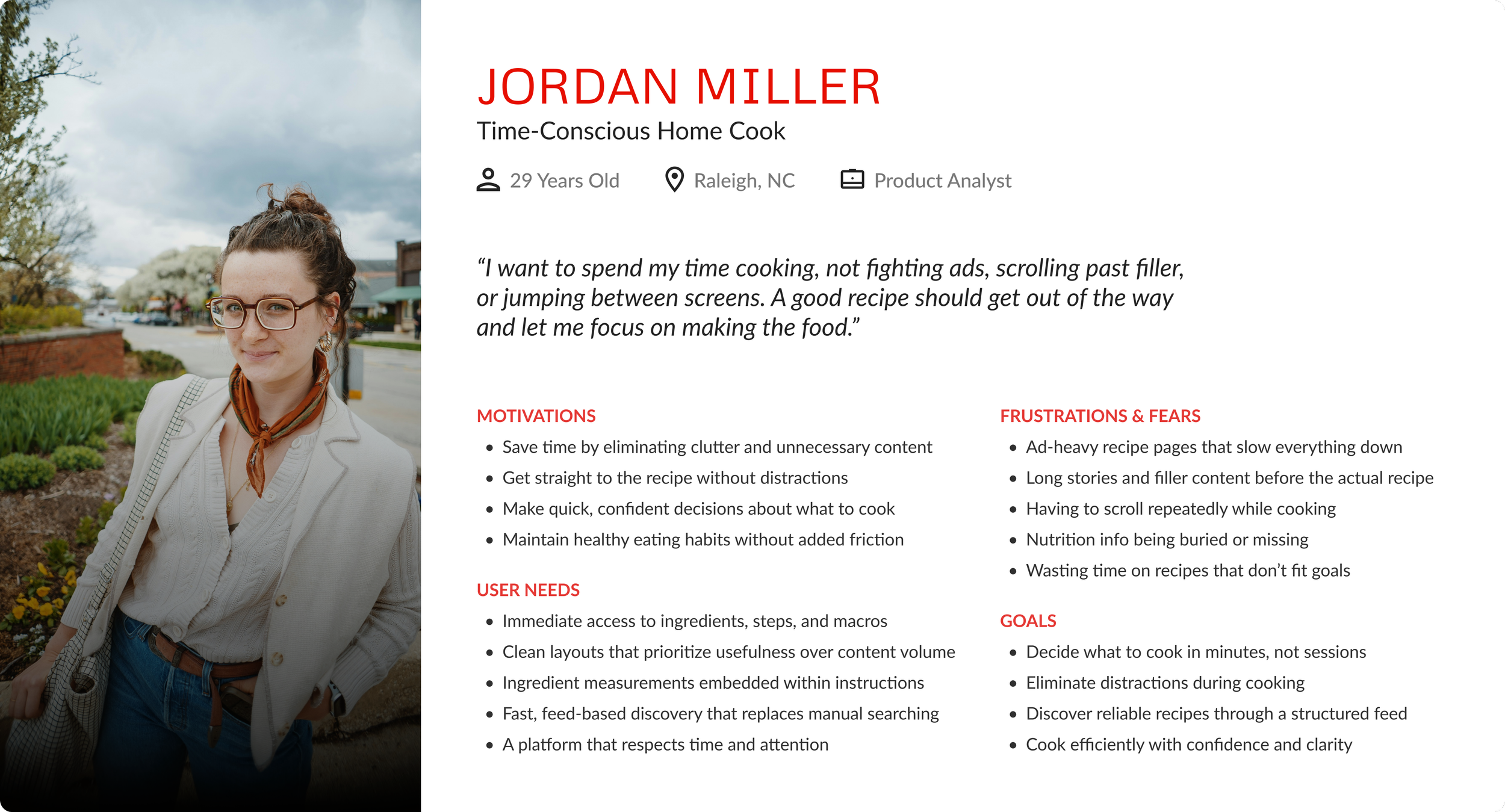 Home cooks want recipe experiences that respect their time, attention, and decision-making process. When essential information is hidden behind ads, excessive scrolling, or poor structure, confidence breaks down and cooking becomes unnecessarily stressful.
